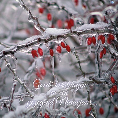 Kerstkaart goede kerstdagen tak met rijp